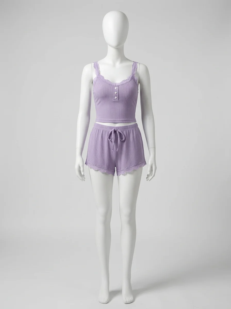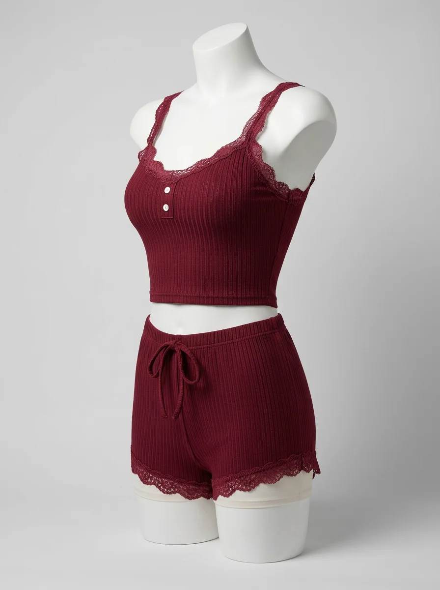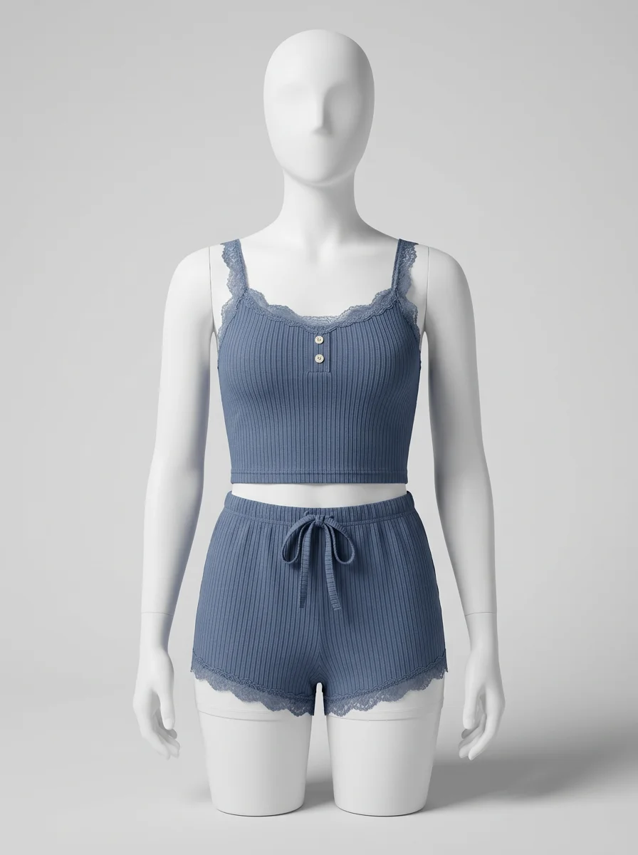 Des matières extensibles épousent les formes avec douceur pour garantir une liberté de mouvement totale. À la différence d’un short satin femme traditionnel, la texture côtelée offre un aspect moderne et une souplesse exceptionnelle. Des boutons décoratifs et un cordon de serrage complètent l’ensemble de nuit idéal pour se relaxer.