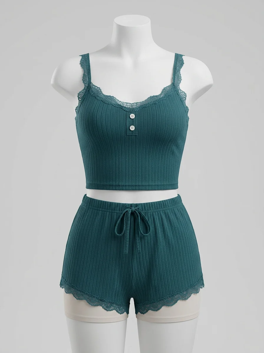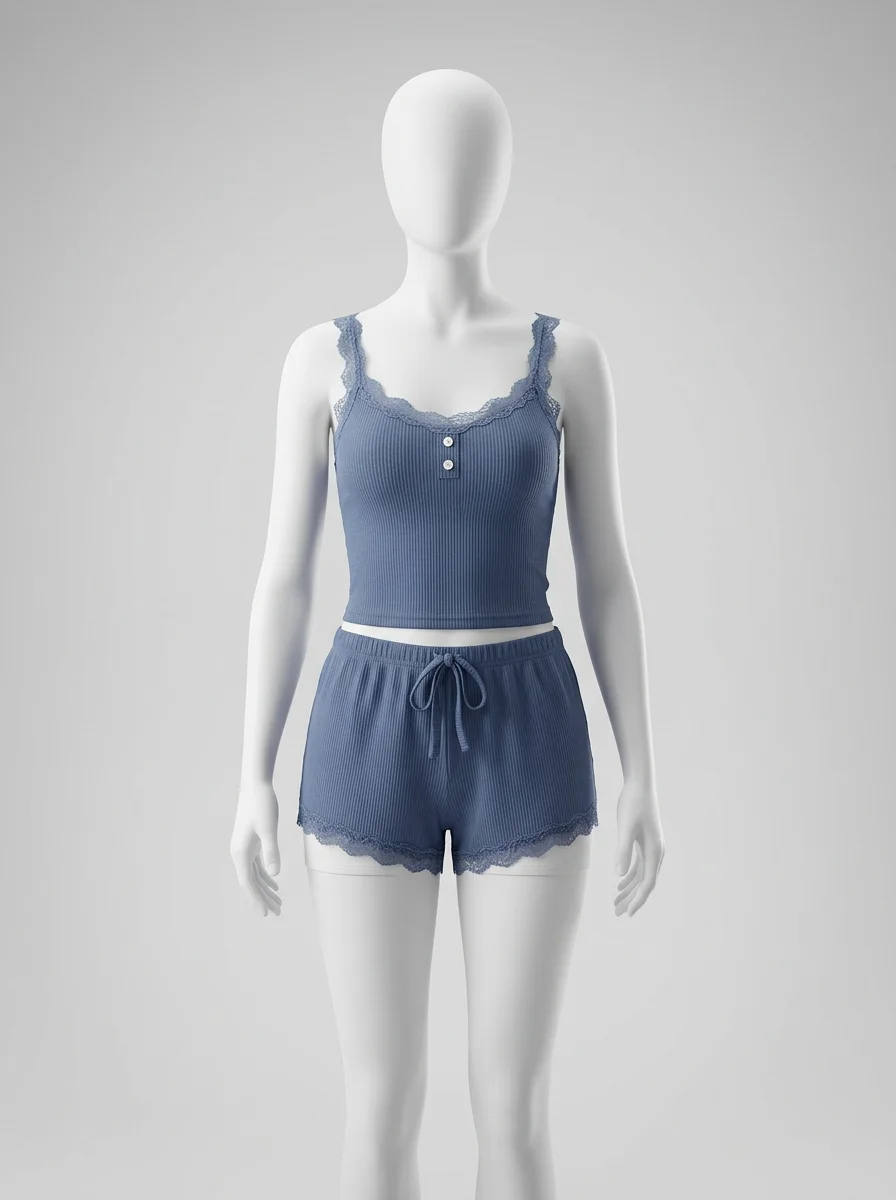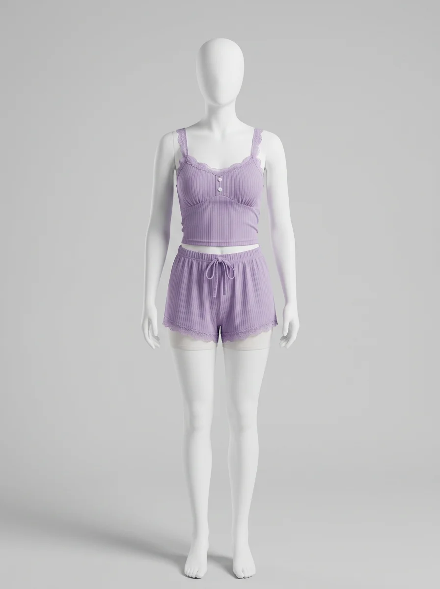 Des matières extensibles épousent les formes avec douceur pour garantir une liberté de mouvement totale. À la différence d’un short satin femme traditionnel, la texture côtelée offre un aspect moderne et une souplesse exceptionnelle. Des boutons décoratifs et un cordon de serrage complètent l’ensemble de nuit idéal pour se relaxer.